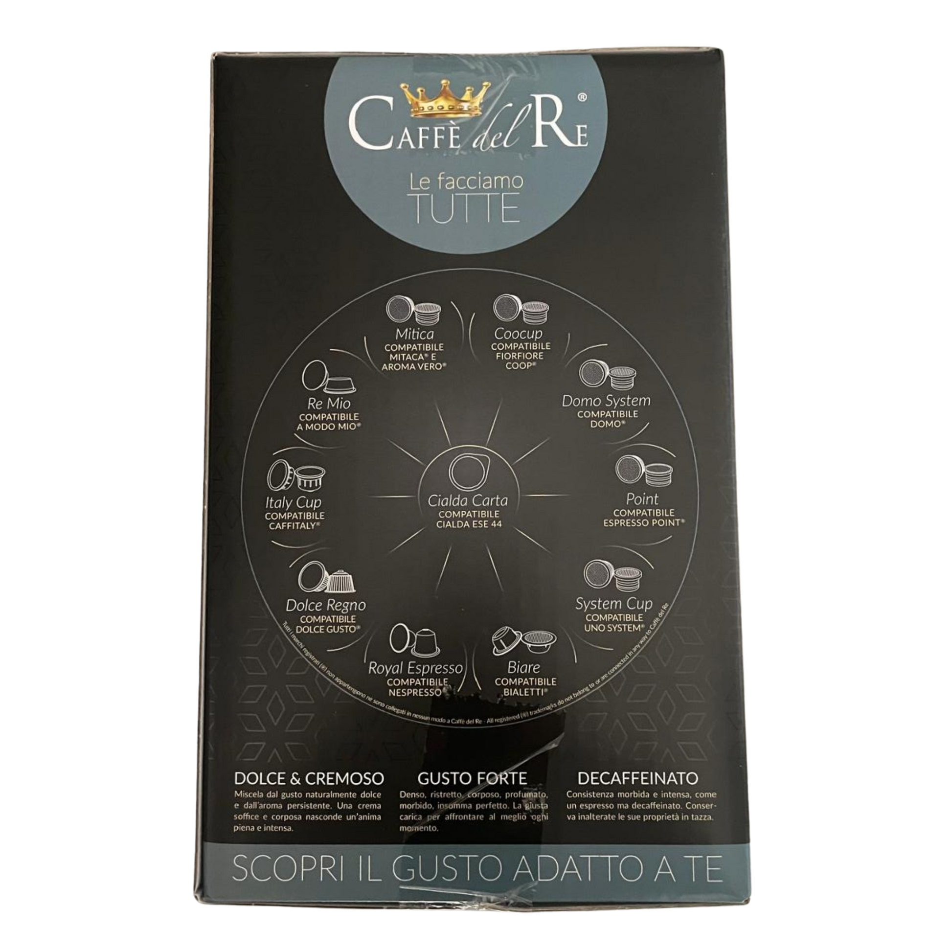 Un espresso elegante, bilanciato e una crema soffice, dal gusto pieno e rotondo. Le cialde Caffè del Re Dolce e Cremoso sono ideali per chi cerca qualità artigianale in ogni tazza. Compatibili con sistema ESE 44mm.